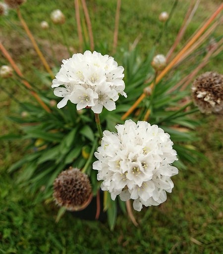 Armeria maritima ‘Ballerina White’ – este o plantă compactă, cu creștere joasă, care formează un pâlc dens, plin de frunze rigide, liniare, ierboase, de culoare verde închis. Glumele se răspândesc lent de la 20 cm până la 30 cm lățime. Florile mici, albe, înfloresc la mijlocul primăverii în ciorchine globulare (aproximativ 2 cm) deasupra unor tulpini subțiri, glabre, care se ridică cu mult deasupra frunzișului până la 20-25 cm înălțime. În timpul verii pot apărea înfloriri suplimentare.
