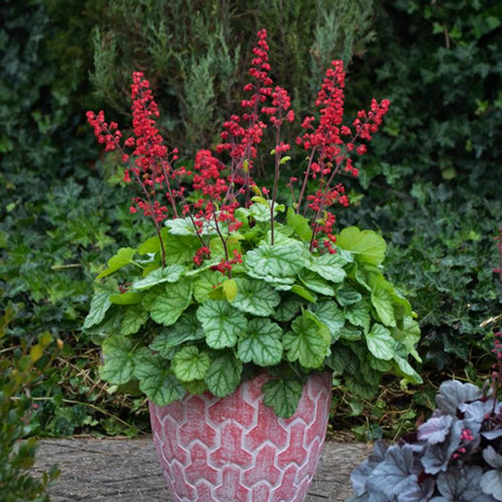 Heuchera sanguinea Leuchtkäfer – Clopoțelul verde este o plantă erbacee care face parte din familia Saxifragaceae. Este foarte decorativă prin tufele sale de culoare purpurie. Înflorescențele apar în timpul verii și au o culoare roză. Trebuie să menționăm că aceste flore sunt decortive si ele la rândul lor, însă tufișul purpuriu este cel care-și copleșește admiratorii. În timpul iernii, planta își păstrează o parte din frunzis, urmând ca primăvara să revină cu forțe noi.